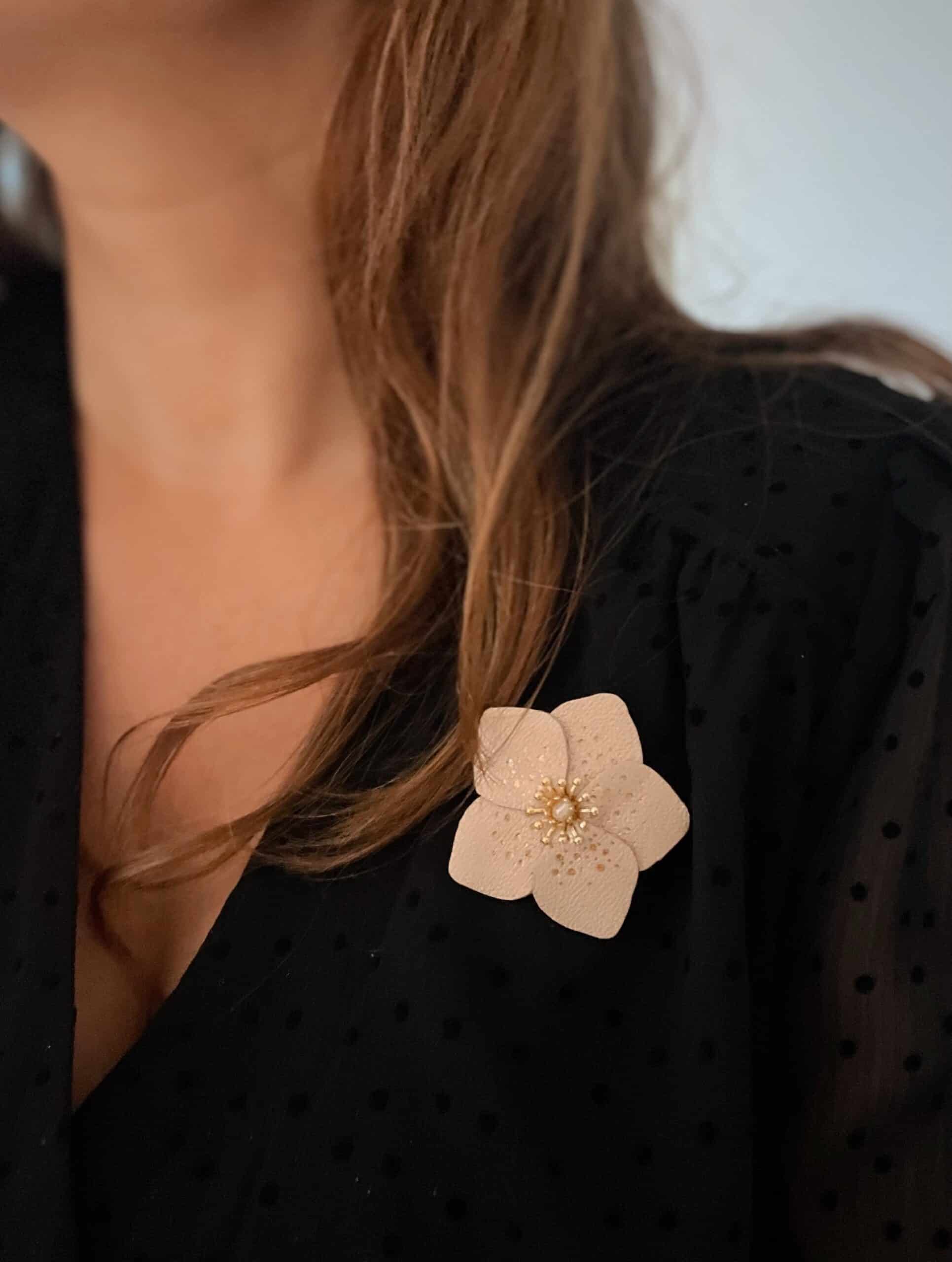 2 reviews for La rose de Noël – broche hellébore en cuir