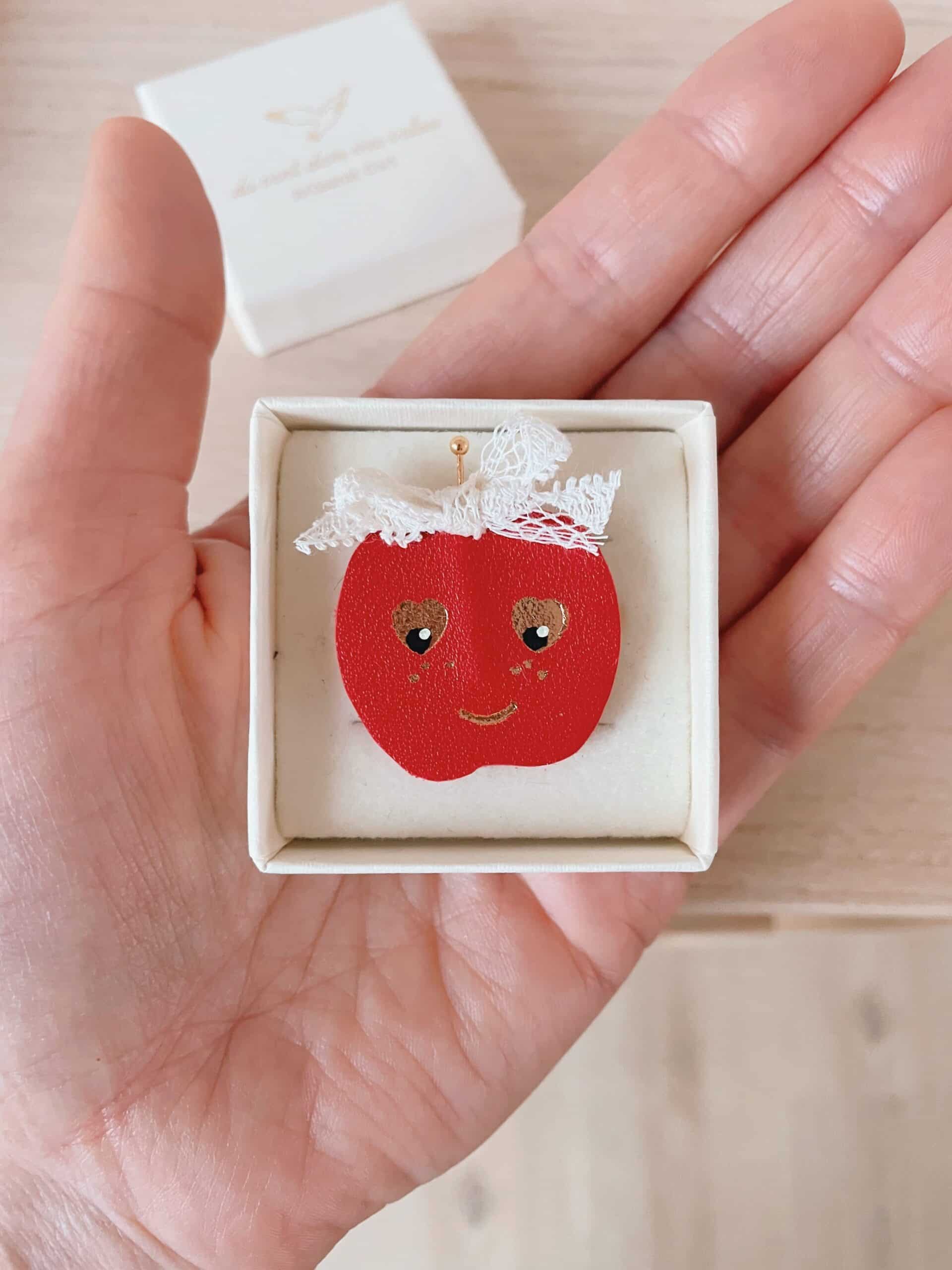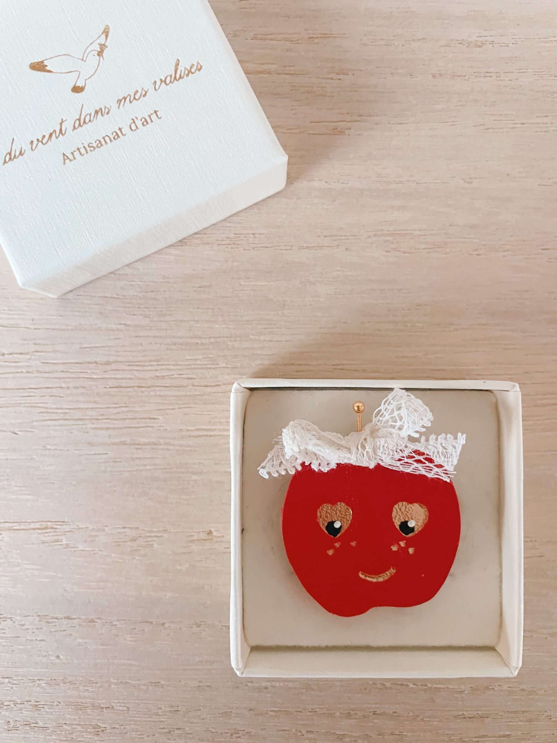 La broche Pomme d’amour s’offre comme un bonbon et se porte comme un clin d’œil.